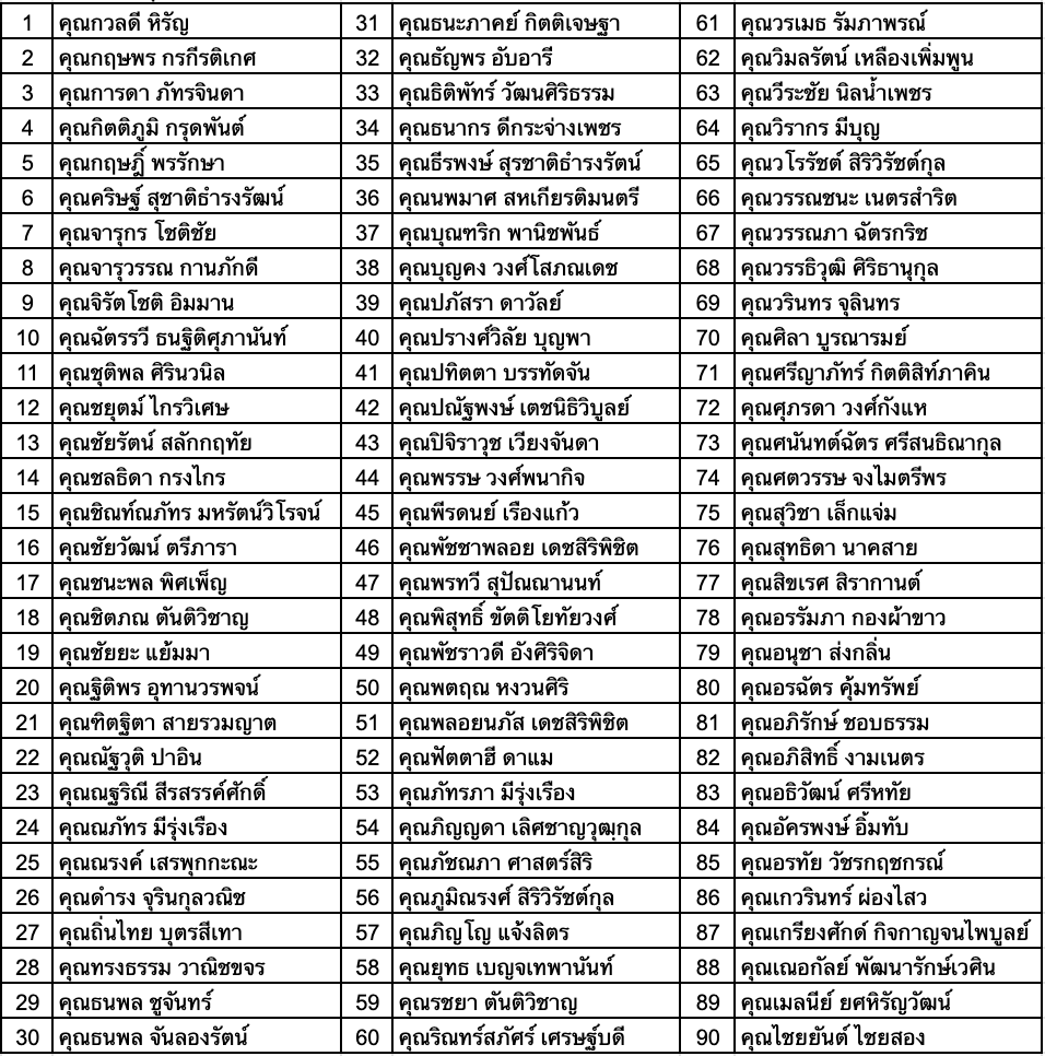 ประกาศรายชื่อ 90 ราย ที่ได้รับการคัดลือกให้เข้าร่วมอบรม วันที่ 3-4 สิงหาคม 2567