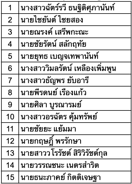 ประกาศรายชื่อ 15 รายที่ผ่านการคัดเลือกจากทั้งหมด 90 ราย